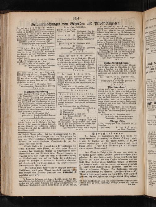 Grabgarten bei der Sct. Leonhardskirche, Grabgarten vor dem Mainzerthor, auf Antrag deſſen Erben öffentlich freiwillig ver⸗ ſteigert. Friedberg am 24. September 1857. In Auftrag Großberzogliches Ortsgericht Der Vorſteher Be n id ie r: