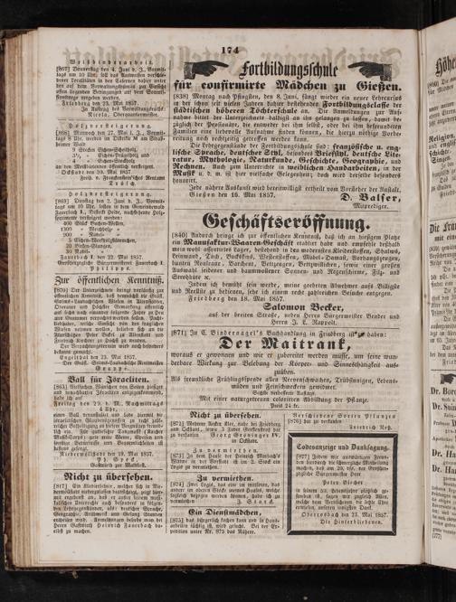 Gießen den 16. Mai 1857. D Balſer . 7 Mitprediger.