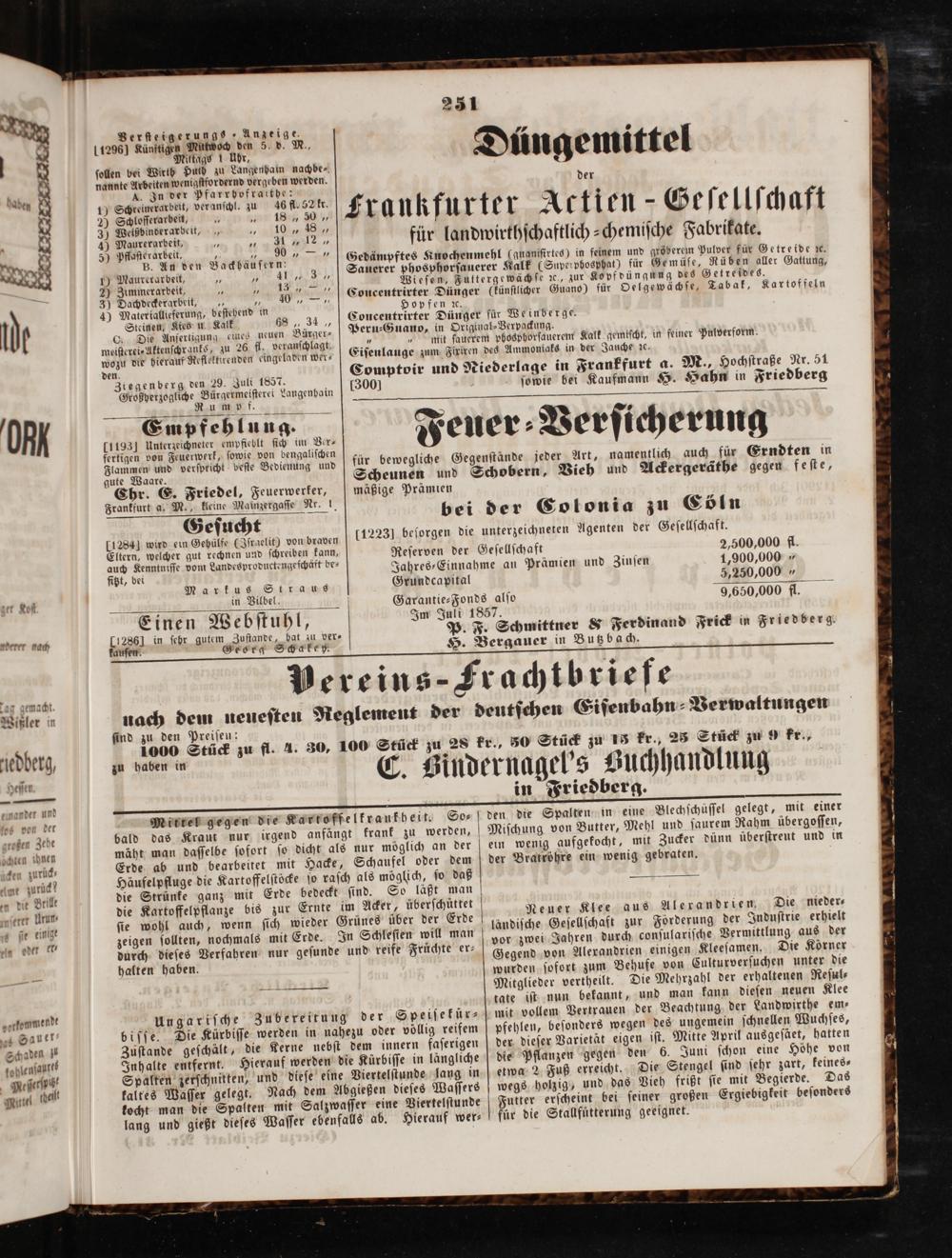 Im Juli 1857. P. F. Schmittner& Ferdinand Frick in Friedberg. H. Bergauer in Butzbach.