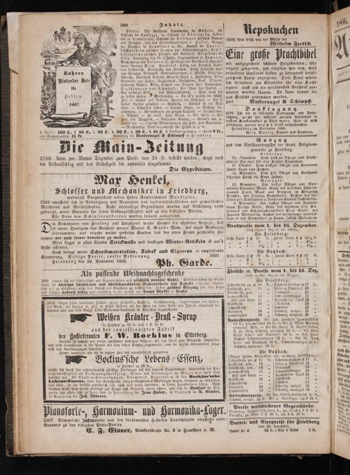 Brodpreise vom 1. bis 15. Dezember. Nach eigener Angabe der Bäcker. Für Friedberg: Erste Sorte 488 18 kr. Zweite Sorte 4 2 16 ½ kr. 1 1„ 9 0 57„ 2 0 874* * 1* 47*** 1. 4 17 Für Butzbach: Erste Sorte 4 3 18 kr. Zweite Sorte 4 f 16 kr. 2