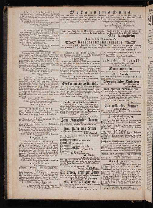 lich versteigert. 2 1 Butzbach den 30. September 1866.