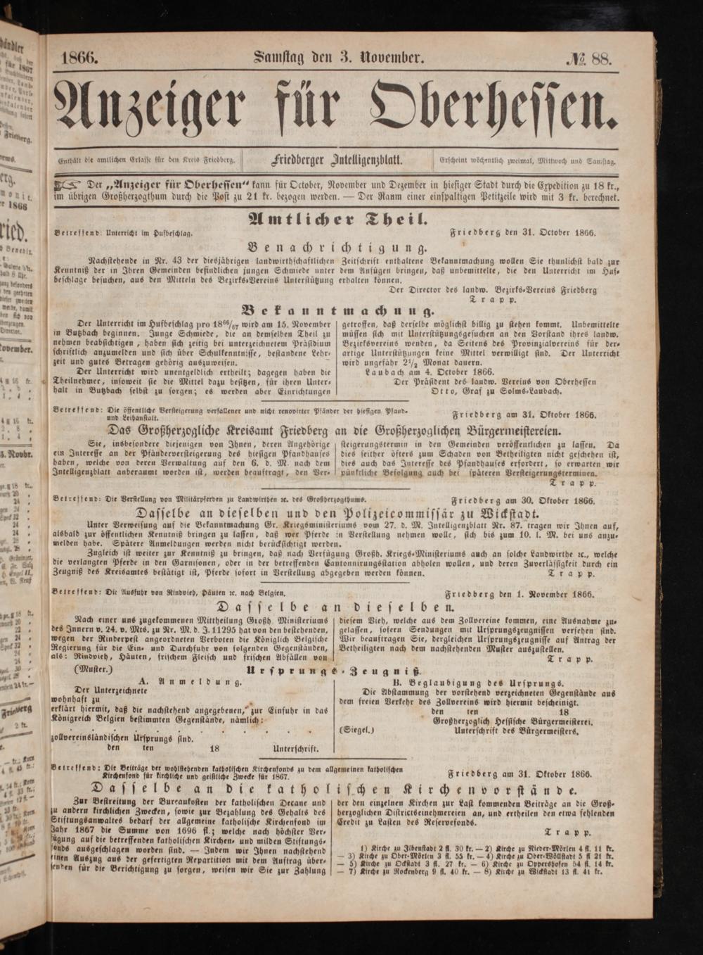 Friedberg am 31. Oktober 1866. i sschen Kirchen vdorstände.