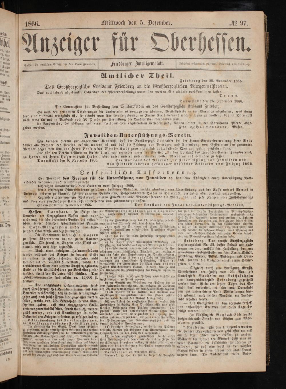 Friedberg den 29. November 1866.