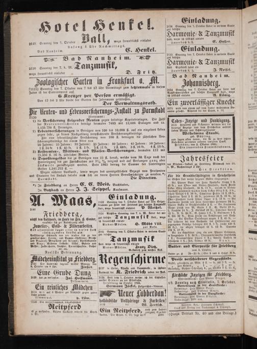 „) In Friedberg an Herrn E. E. Weis, Buchbinder. In Butzbach an Herrn J. J. Seippel, Kaufmann.