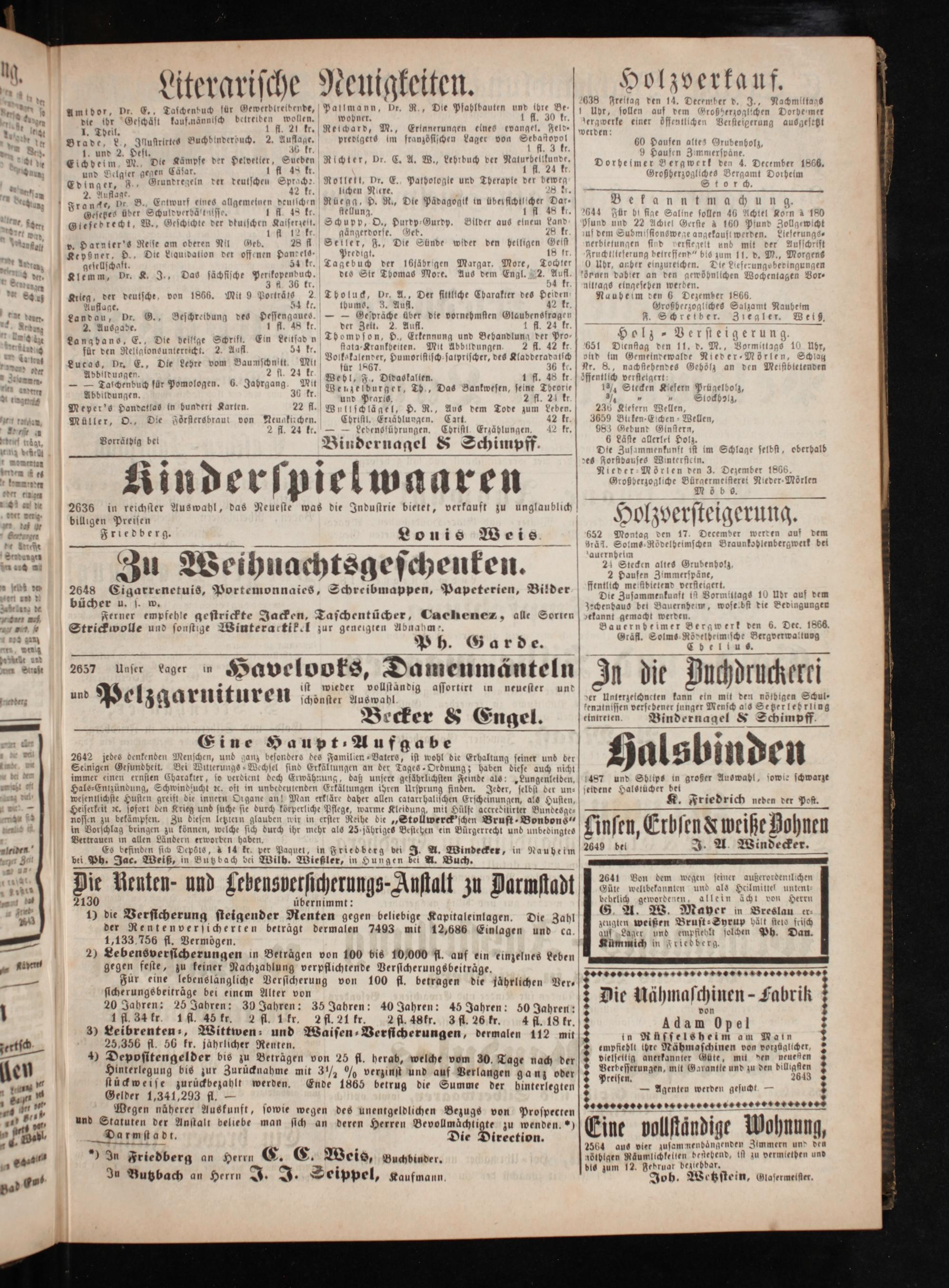 *) In Friedberg an Herrn C. C. Weis, Buchbinder. In Butzbach an Herrn*— Deippel, Kaufmann,