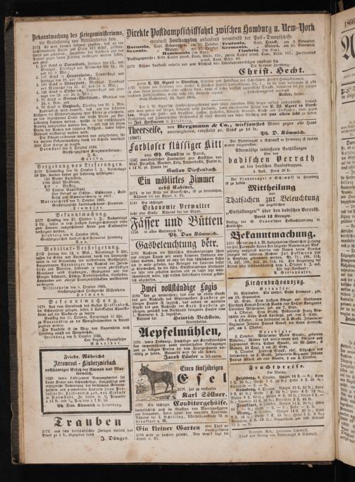 die Veräußerung von Militärpferden betr. 2172 Es wird blermit bekannt gegeben, daß an den nachbenannten Tagen und Orten 819 Stück, größten theils gut gehaltene, Zugpferde der Artillerte und des Trains gegen baare Zablung versteigert werden sollen, und zwar