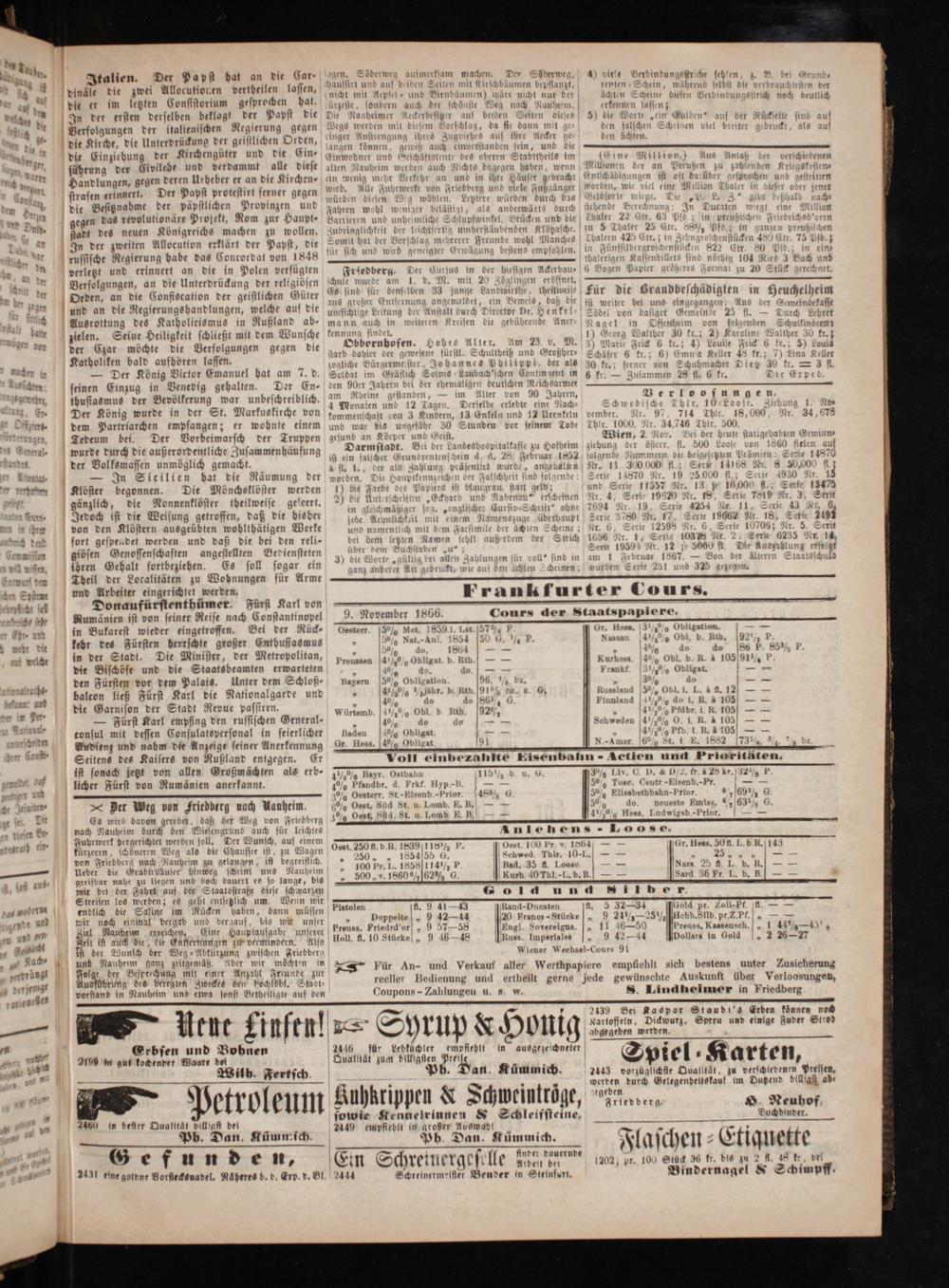 f U e der. 2 * f Itali Jr 1 en D uf dinäle di 1 er Pa Aue die er* zwei n hat an die Ca ches pf letzten Const en verthei r- ogen. Söde n d onsist en 1 derwe u 3 er ersten der storium gest assen, chaussirt und veg aufmerk eren d erselben beklagt d prochen hat. age e ee N. 14— 1 f 4 0 Mep Se 1 r„ 0* de die Kirche, di er italienischen Re er Papst die Beese e, Ulenbäum e berge die Einzieh ie Unterdrückung der egierung gegen 8 Rauber auch der r wäre ich fe viele Verbinde N.* ehur 57 eistli a Weg* a Aec N ch önst 70 0 115 rent 4 ings 18— ver A. le Airchengüter 5 1 Orden 9 5 9 mit N 454—— nach Naute der ichen + 7 1 11 che fehlen, z. 2 erh f llede 1 nd d 44a N Anstrer iesem Vors den E im. Scheine d ährend selk„. B. bei Nr andlung und ve le E an gung rschlag, d Seiten d erker Oies st die a Grun drs a en, gegen d erdammt in⸗ igen könner g ihres Zu„da sie d dieses 5 men lassen; en Verbint verbraucht 5 den AN strafen e ö eren Urbeb alle dies Einwoh„ gewiß Zugviehes auf ann mit die Wo 13 bindungsstrich n sten der m N K rinnert D eber er 1 iese hner und G auch einver if ihre 2 9 N rte Fein G h noch deut Der die Besi n er Papst an die Ki alten N 1d Gescha zwerstand Aecker g en falsch„ein Gulden“. eutlich 8 en esitzn 0 apst pr 1 3 irchen⸗ Nauheir a äftslente de den seir e 1 schen Se N auf d Du f e. der päpft brotestirt ferne n= ein wenig 05 werden auch des oberen 8 3 und die den ächten. cheinen viel un Rückselte Dusd⸗ gegen da: apst N er gege g mehr 2 N Stadtthe brei in 5 8 revolutionär stlichen Pro gegen wird. Alle 5 r Verkehr chte dage itheils im e sinb auf 8 an stadt des neuen Zane Projekt No ovinzen und würd Nn 3 und in 592 haben, T 2 fue N77 ückt, als auf g Königrei 7 ö 5 8 i 5 Häus n 8 Asch zweiten 5. zur Haupt- 1 w bl 5 9 2 1 und geln gebracht Ent 00 n der an Pre Aus Anlaß a russisch 6 ocutio a zu Barri deniger b etztere wi Fußgän ntschäbigungen if e dr der e Regie on erklär wolle eren und zer belästigt würd ger word n ist o zu zahl versch a5 gierun rklärt d en. Zud id unheimliche S igt, als en durch d den, wie viel oft darüb zahlend iebenen ad verletzt 9 habe* er Papst Zudringlichkei mliche S ls and durch das Geld ie vi über g n Kr N 13 und eri das Con apst, die Se leit der leichte Schlupfw derwärts d elosor te eine Millten Thaler n Ann d Berf rinnert ncordat r Somit hat der V ichtferti winkel, 1 durch stehend wiege. 2 lion Thal n und gestri 15 11 der olgun an die i at von 1848 für der Verschl umbersi kiden und die 2 nde Bereck Di er estritten ber gegen Orden,* an die 1 Polen e sich und wird ac* hrerer Fr—— Kibpasche kholer 22 Cr. 63 J 2— 10— 2* * le Co 5 dun gien eigter Er 8 unde wohl G che. zu 5 Tl 63 Pf ien Phalb Hi und 1 onsis g der 11 N wägung b Manches Thaler 23 in v eat ei nach⸗ 0 t die 8 der D 3 Der bestens 4 7 5 balern 425 50 Cir. 58% 54 ichen 5 225 101 g ate un 1 gshandlu 1 n Güter Es* am 1. d ursus in de blen. in Fünssilt 24 5 in 3 105 f.; in ga drichsd'oren en pon zielen. A. welche auf— 2 für dens 10 1 M. mit 20 hiesigen Aderbau thalerigen 1 00 0 92 nstücken 1890 preußischen N 1 n großer ben 39 Nand 8 b Kassenbill 11 Ctr. 75 — Car 1 schließt in Rußland* Asiige deitung der 1 15 0 dandullente, eröffnet 6 Bogen Papi 0 leis sind nö 10 1 80 Pf 1a. 12 ocht 1 zt mit de 0 0 ige Leitung d angemelde dwirthe, ik ö iet größeres ig 104 Pfd. in ein der atholik e die Verf dem Wuns mann au der A t, ein B heilwei 8 Norm Rie. in 3 en bald erfolgung Vunsche ke auch in 0 i brd Bite“ Br. ciliweise Für di mal mu 20 Stig Buch und Wee— aufhör gungen ge e kennung find u weiteren Kreisen Director ane ie Bre.) Stück g 5 kücdten. Der Könt en lassen gegen die Ob findet. kreisen die r Dr. Henk ist weit andbeschädi gerechnet tatg tbr seinen onig Victor N sarb obbornbofe e gebührende 2 el⸗ Sböd eiter bei uns 0 hädigten in 0 N 8 in dal bat am 7 r e der 3 Alter e Aner⸗Na 45 1 dasiget 1 gangen Au n Heuchelheim . 2 1 ehalte 7. b. E che Bürs ne fürstl 3 Am 23 a in Of emeinde 25 us der G 1 K 5 Der Köni der Bevölke gehalten. 17 Sold germeister, J sil. Schultbeiß 3. v. M 1) Gee If nhein 5 fl Gemeind b er run Der E oldat in er, Joh ultheiß M. org Walt heim vo fl.— Dur ekasse ers d önig wurd g war. En- den L n Gräflich Se hannes! ß und Groß) Mar alther 30 on felgen Durch Leh . em Partri e in der S unbeschrei den 90er Jah 9 Soims Pbilip oßher⸗ S Marie Frick 7 nden Schul ehret gen rtr r St. reibl am Möbel ren be s Laubach' ppi,. Schäfer 6 ick 6 kr.; Karol Schulkinder 3 Tedeum 2 empfange 5 Markuskirche 3 4 Rbeine 55 der Ei a als 50— r 6 kr.; 6) 75 4) Louise Fu Walther 3 * al · wu ei. Der Vorb n; er wob von fe onaien und den,— im n deutschen Re ent in 67 r.; fer 4 mn a Saller 18 6 k., 3 kr. ett rde durch di* Vorbeim ohnte ein kommensch 12 Tagen— Alter 6 ichsarmee— Zuf n Schuhm 48 kr. Louis der Volken fe 1 der Trup em und war 1 on J Kinder Derselbe erlebt 90 Jahren Zalmmen 28 f 8 Die W Keller Antatat⸗ nassen 8 iche 3 5 pen r bis un eindern, 13 E bte eine N„„ r. 0 kr.— 2 2 1 unmögli Zusammenhä gesund a gefäbr 30 S nleln und e Nach⸗ 8 V 57 2 3 fl. — 1 2 N an Kö 30 S un 1 0 re Erpet dent Klöst In Sicili 9 ich gemacht häufung Darn Töcp r und G Stunden der 12 Urenkeln Schwedische* lo o s u Fxpeb. 1 Lloster begonn ien bat die 5 a ein— Bei 8 eist. seinem Tod vember.* bir. 1024 n gen 1 1 b 1 z alse ei der Lan de Thl Nr. 97— 5 Loof. 2 gänzlich, die 90 Die Mönch Räumung der fl. 1. 2. pitalkass N 009. J. 34 eee 18 Ziehung 1. J 8 Jedoch ist die 5— sklöster 3 worden. 8 Zahlung Ker, d. d. 28 r Hofheim zi— 2 Ro 746 Tolr. 500„500 Nr. 34—— A von d eisu eilweis n) die Far Daupikennzeicher sentirt wurde ruar 1852 le ing der öfter. Bei der heute 25 dab en Klöst ing getroff eise ele ie Farb ennzeichen de 8 urd 5 2 folgend österr, fl. 8 cute stat da N öster getroffen geseert 8d e des Papier n der Falsch„ange balten ide Numm 1. 500 Loo atigebal. r fort ges n ausgeü„ daß di 5 die 
