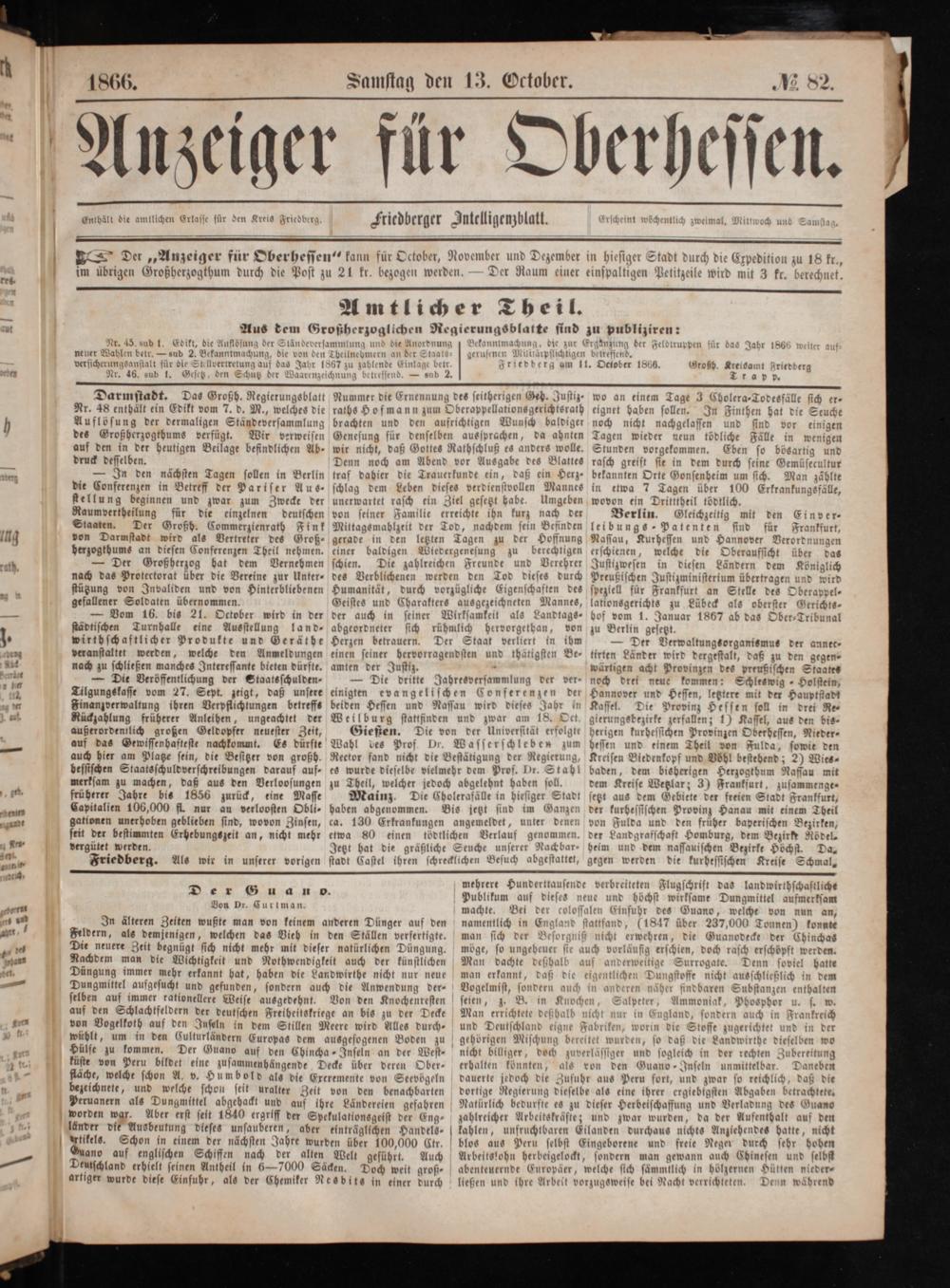 der„Anzeiger für Oberhessen“ kann für October, November im übrigen Großherzogthum durch die Post zu 21 kr. bezogen werden. N