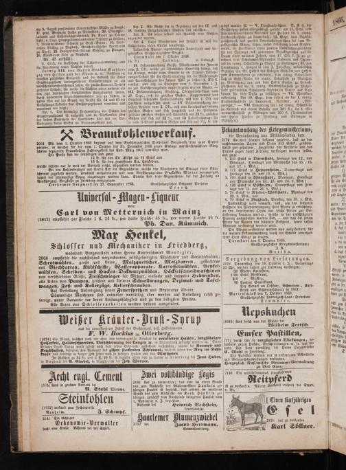 In Flaschen zu 35 kr. und 1 fl. 10 kr. ist derselbe allein ächt zu haben in Friedberg bei Jean Huber, in Butzbach bei A. Gimbel, in Nauheim bei Joh. Wörner.