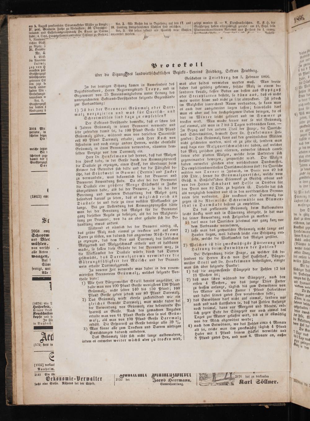 Protokoll über die Sitzungfides landwirthschaftlichen Bezirks-Vereins Friedberg, Sektion Friedberg.