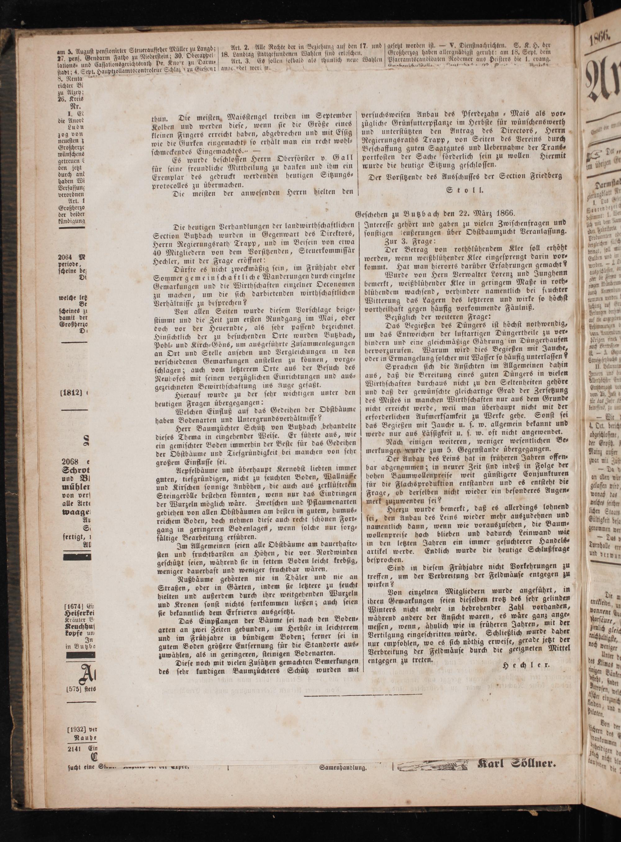Geschehen zu Butzbach den 22. März 1866.