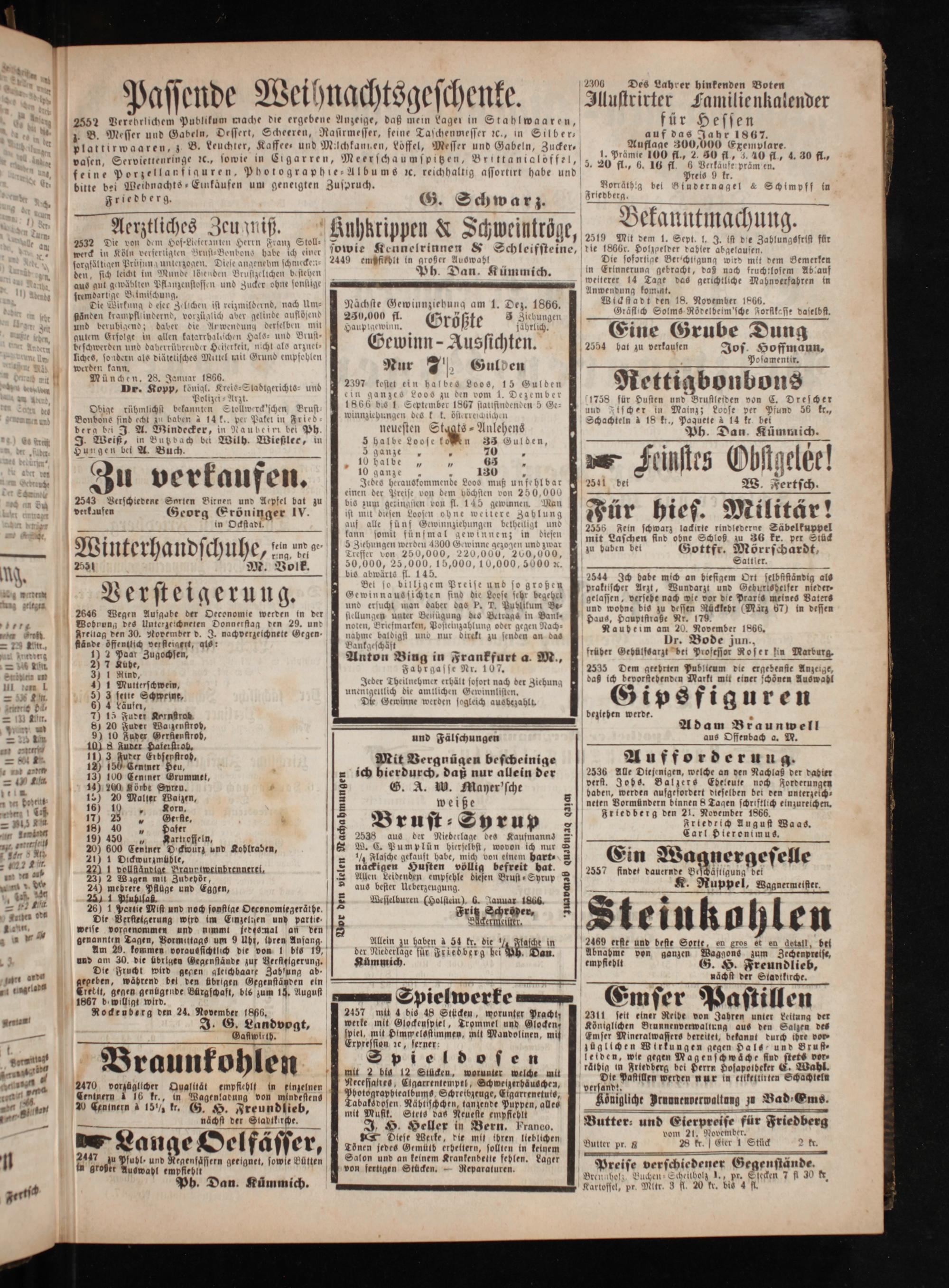 Nächste Gewinnziehung am 1. Dez. 1866.
