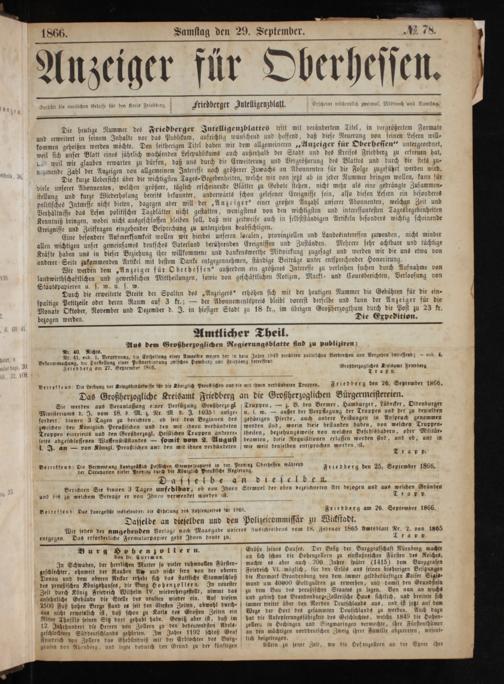 Anzeiger für Oberhessen.
