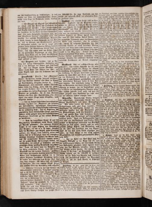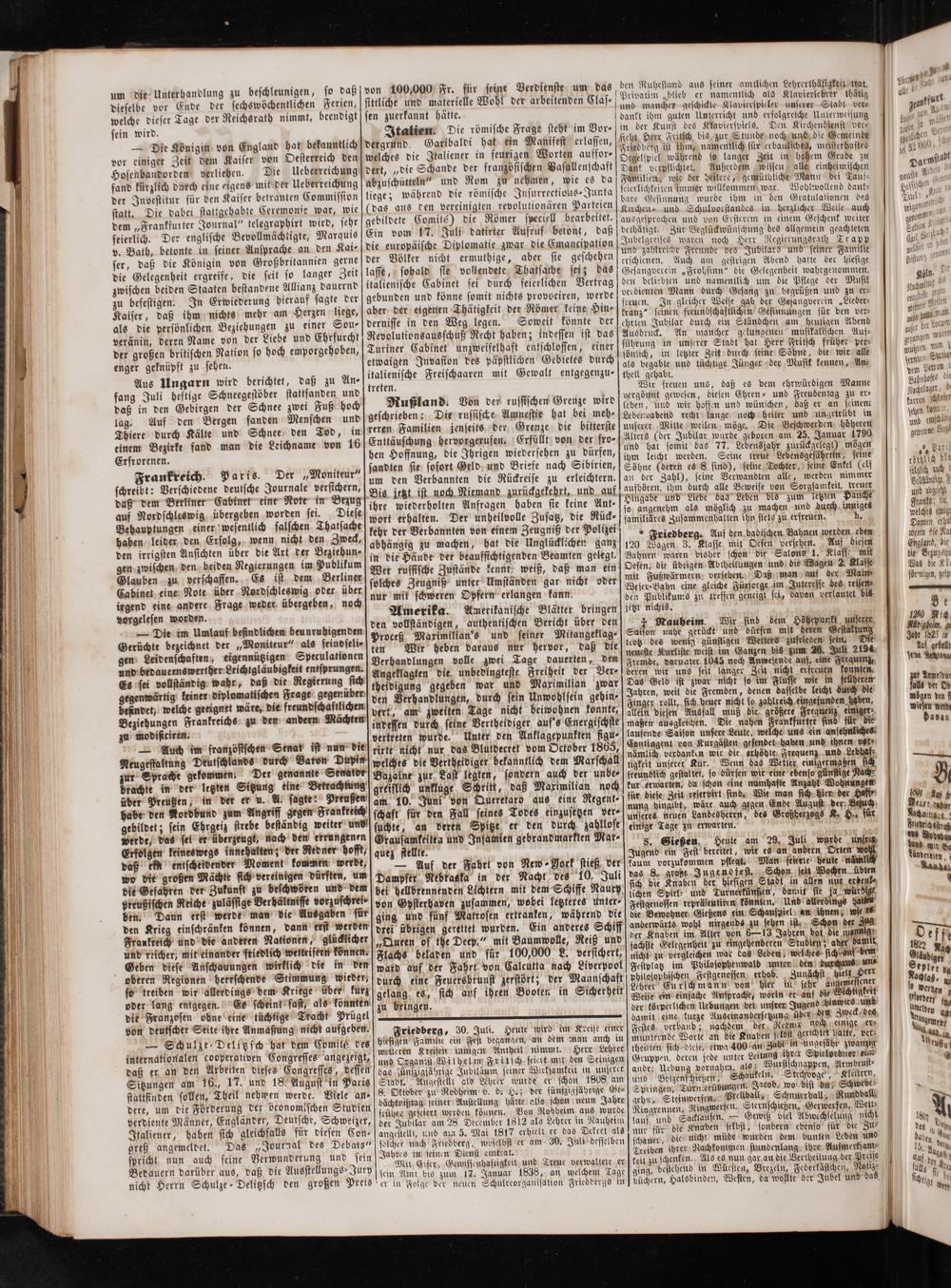 Amerika. Amerikanische Blätter bringen den vollständigen, authentischen Bericht über den proceß Maximilian's und seiner Mitangeklag⸗ ten Wir heben daraus nur hervor, daß die Verhandlungen volle zwei Tage dauerten, den Angeklagten die unbedingteste Freiheit der Ver⸗ theidigung gegeben war und Maximilian zwar den Verhandlungen, durch sein Unwohlsein gehin⸗ vert, am zweiten Tage nicht beiwohnen konnte, indessen durch seine Vertheidiger auf's Energischste vertreten wurde. Unter den Anklagepunkten figu⸗ rirte nicht nur das Blutdecret vom October 1865, welches die Vertheidiger bekanntlich dem Marschall Bazaine zur Last legten, sondern auch der unbe⸗ greiflich unkluge Schritt, daß Maximilian noch