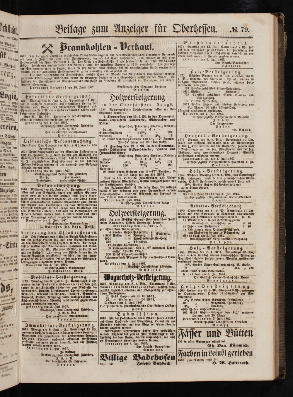 Beilage zum Anzeiger für Oberhessen.
