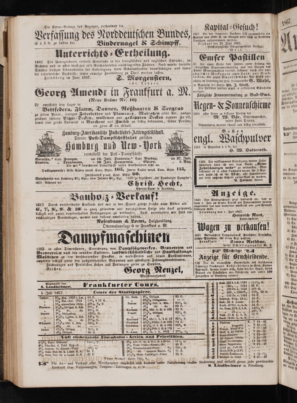 Kapital von 3000 fl. im Ganzen oder auch in kleineren Beträgen aufgenommen werden. Berstadt den 25. Junk 1867. Großherzogliche 5 Berstadt Weil.