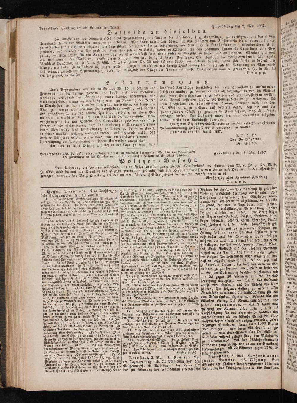 8. f Friedberg den 2. Mai 1867. sselbe an dieselben.