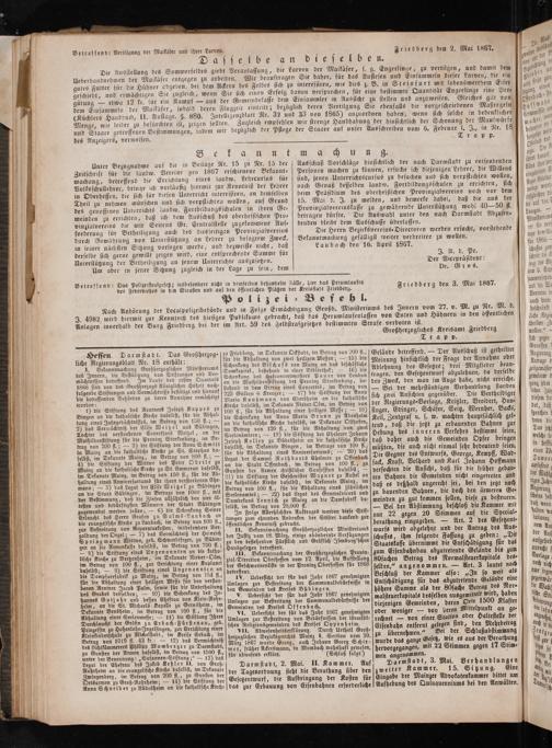 in demselben behandelte Fälle, hier das Herumlaufen Friedberg den 3. Mai 1867