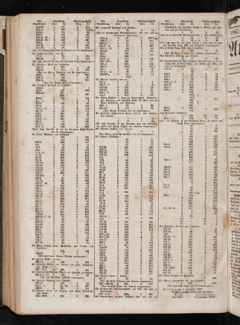 Friedberg am 7. November 1867. cpo es Landgericht Friedberg. Reitz, Steinberger, Landrichter. Landgerichts⸗Assessor.