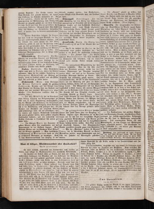 Das Petroleum. Von Dr. Curtman. Die größten Schätze, welche der Mensch in den letzten Jahrzehnden dem Boden abgewonnen hat, bestehen nicht in dem Golde Californiens und Neuhollands, sondern in dem Oele, welches er den Quellen der Tiefe