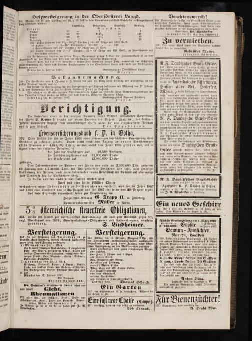 364 welche sich sowohl zur vortheilhaften Kapitalanlage als auch zum Umtausch gegen 5% engl. Metalliques von 1859, Grundentlastungs-Obligationen und National eignen, empfiehlt