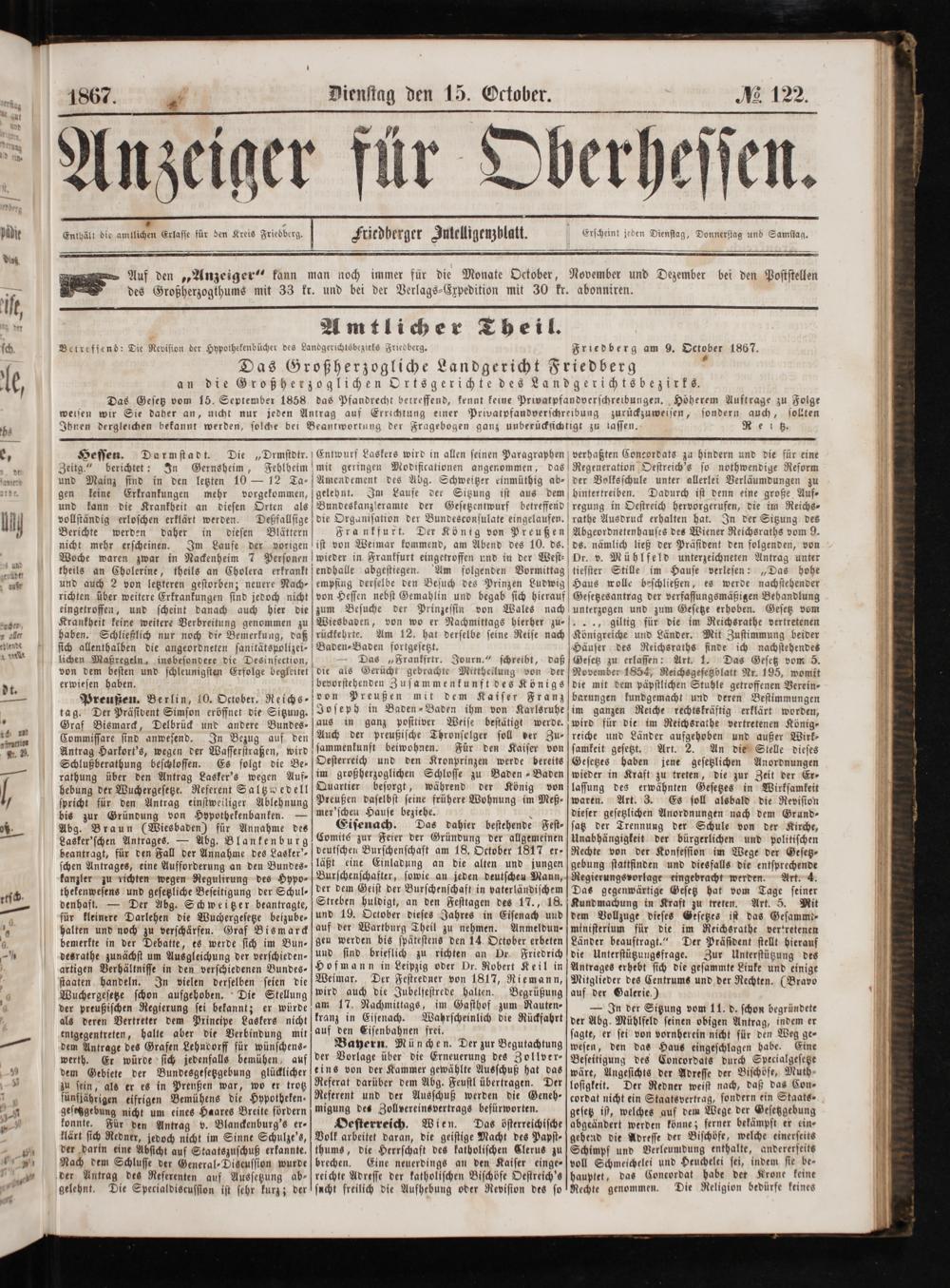 Anzeiger für Oberhessen.