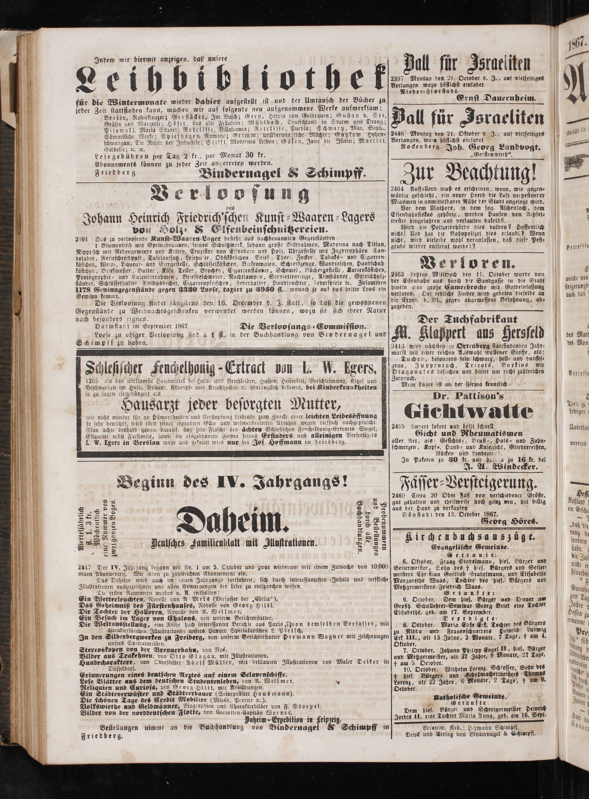 i Daheim-Erpedition in Leipzig. Bestellungen nimmt an die Buchhandlung von Bindernagel Schimpff in Friedberg.
