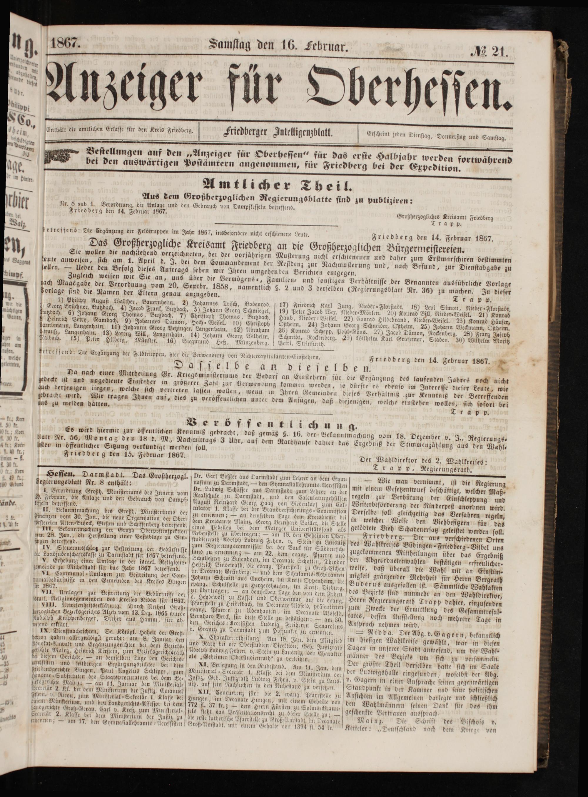 Friedberg den 15. Februar 1867.