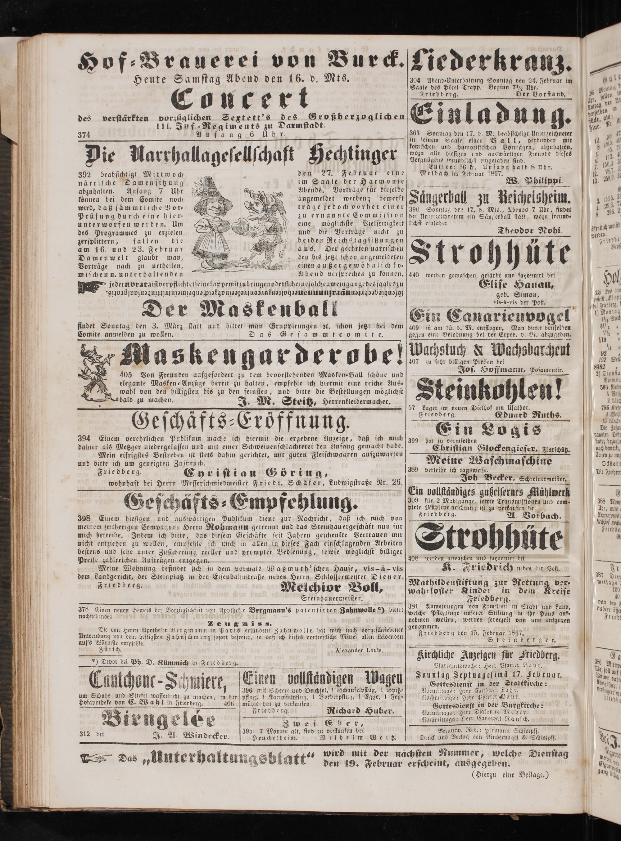 genommen. Friedberg den 15. Februar 1867. S ienßgh