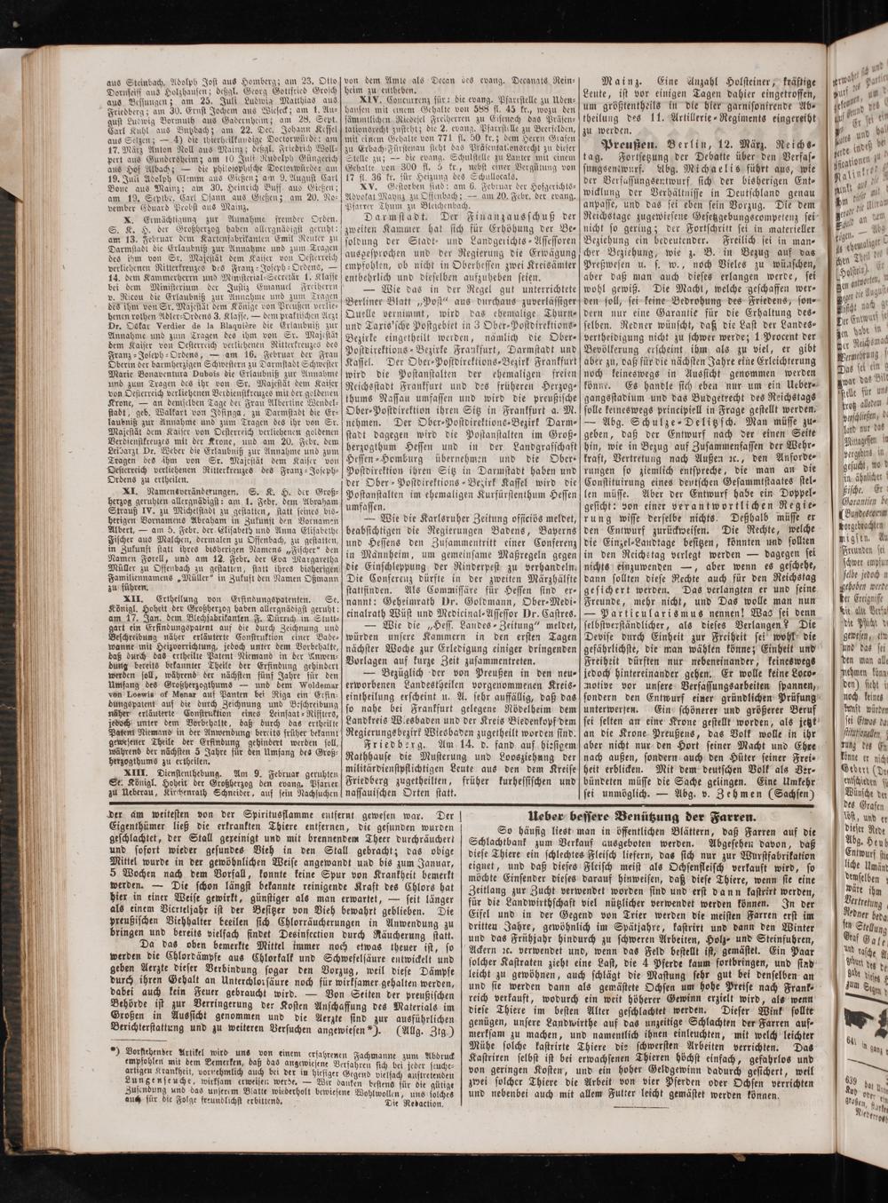 Preußen. Berlin, 12. März. Reichs⸗ iudtß be tag. Fortsetzung der Debatte über den Verfas⸗ begann 1 f sungsentwurf. Abg. Michaelis führt aus, wie ea,