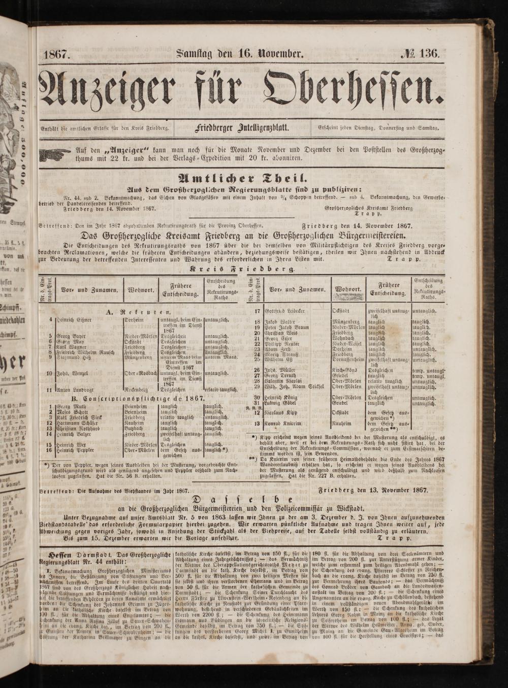 Friedberg den 14. November 1867.
