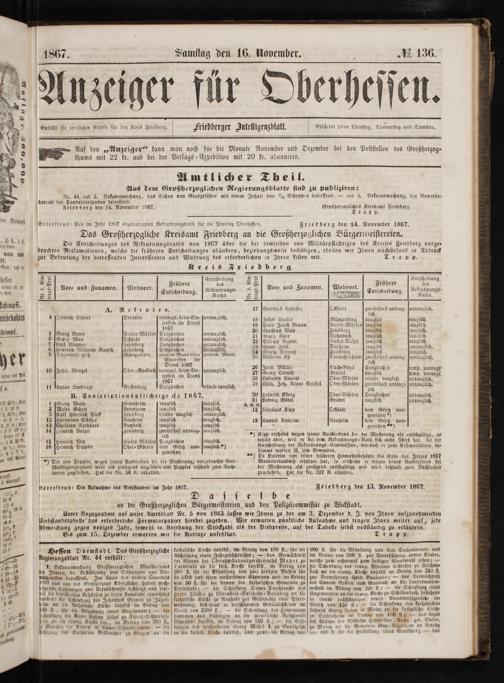 Anzeiger für Oberhessen.