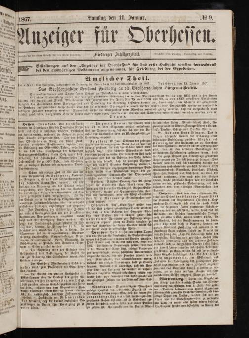 „Anzeiger für Oberhessen“ für das erste Halbjahr werden fortwährend