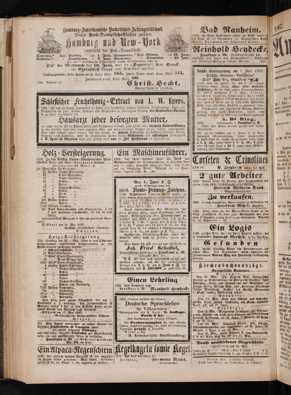 dards. Wickstadt den 18. Mai 1867. Gräfliche Oberförsterei Assenheim Schal las.