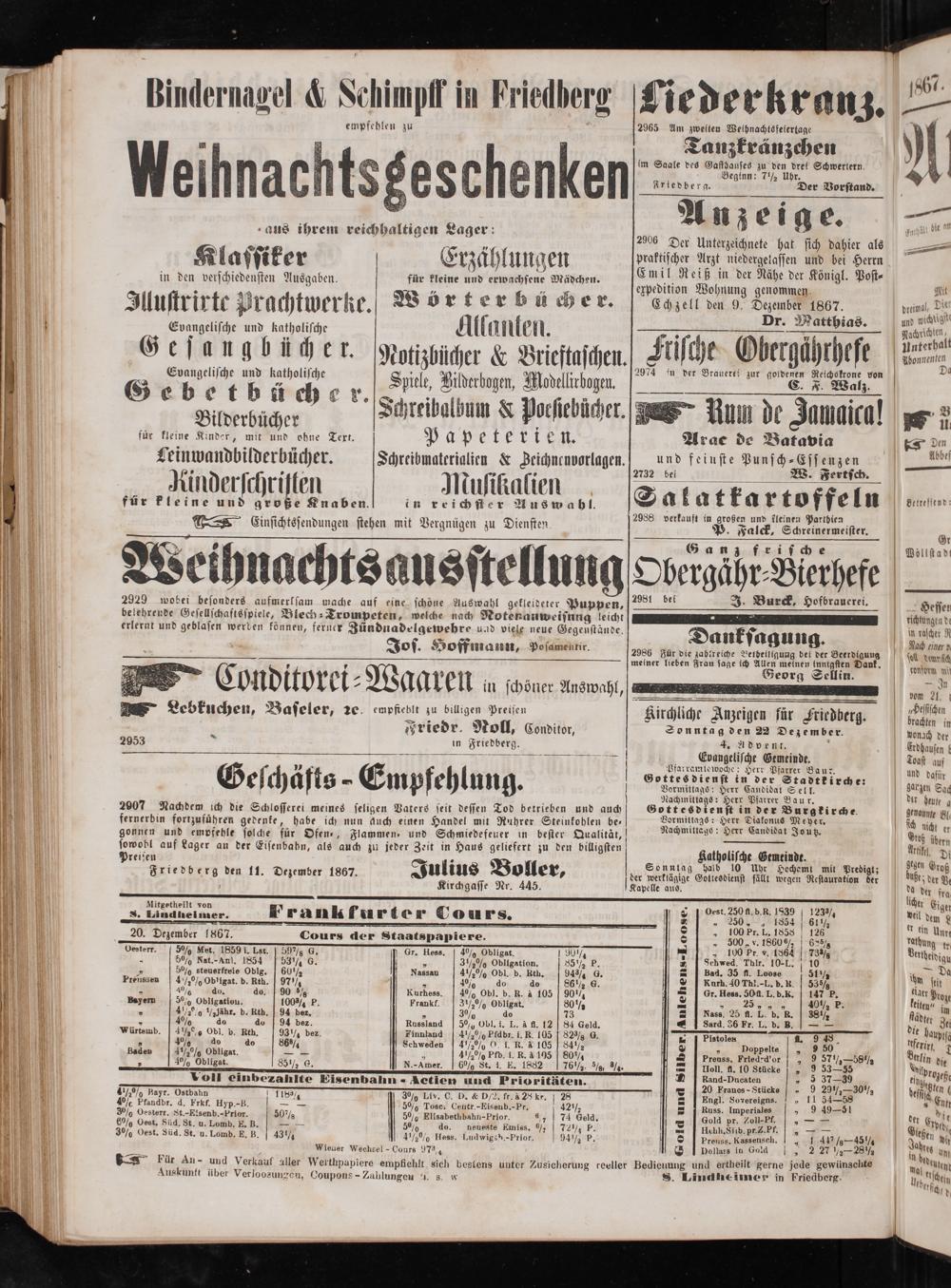 Kirchliche Anzeigen für Friedberg. Sonntag den 22 Dezember. 4. Advent. ö Evangelische Gemeinde.