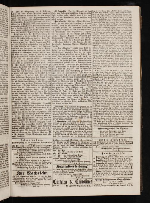 1 1150 Zur Nachricht. Wie 1867 10 fl. 35 11 Geile 8 fl. 21 fr.; Haset 5 22 kr. 7. 15— Auf die Anfrage unter Nr. 142 diene zur Nach Ver el 32 1 renn 70506„Daß Auefanst uber die bie beute noch nicht erledigte r.—— a— r enen eee N 75415 Preise verschiedener Gegenstände. att— 1 Friedberg den 4 Januat 1867. bl elen N lind Inks gried berg am 2] Murat. r 0 Oropperzogliche Burgermeisteret Irledberg 2, Butter pr. 24 tr. Ce i Suck 2 ke. 1 115 W a1 6. 2708 bet K. Friedrich neben der Post. Ureunhelz, Buchen ⸗Seuholz 1.. Sten 7 f 30 k.