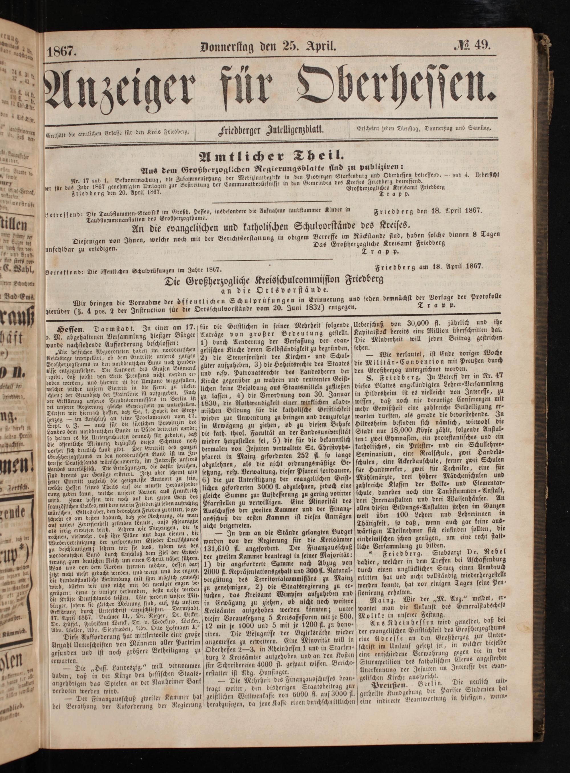 Friedberg den 18. Npril 1867.