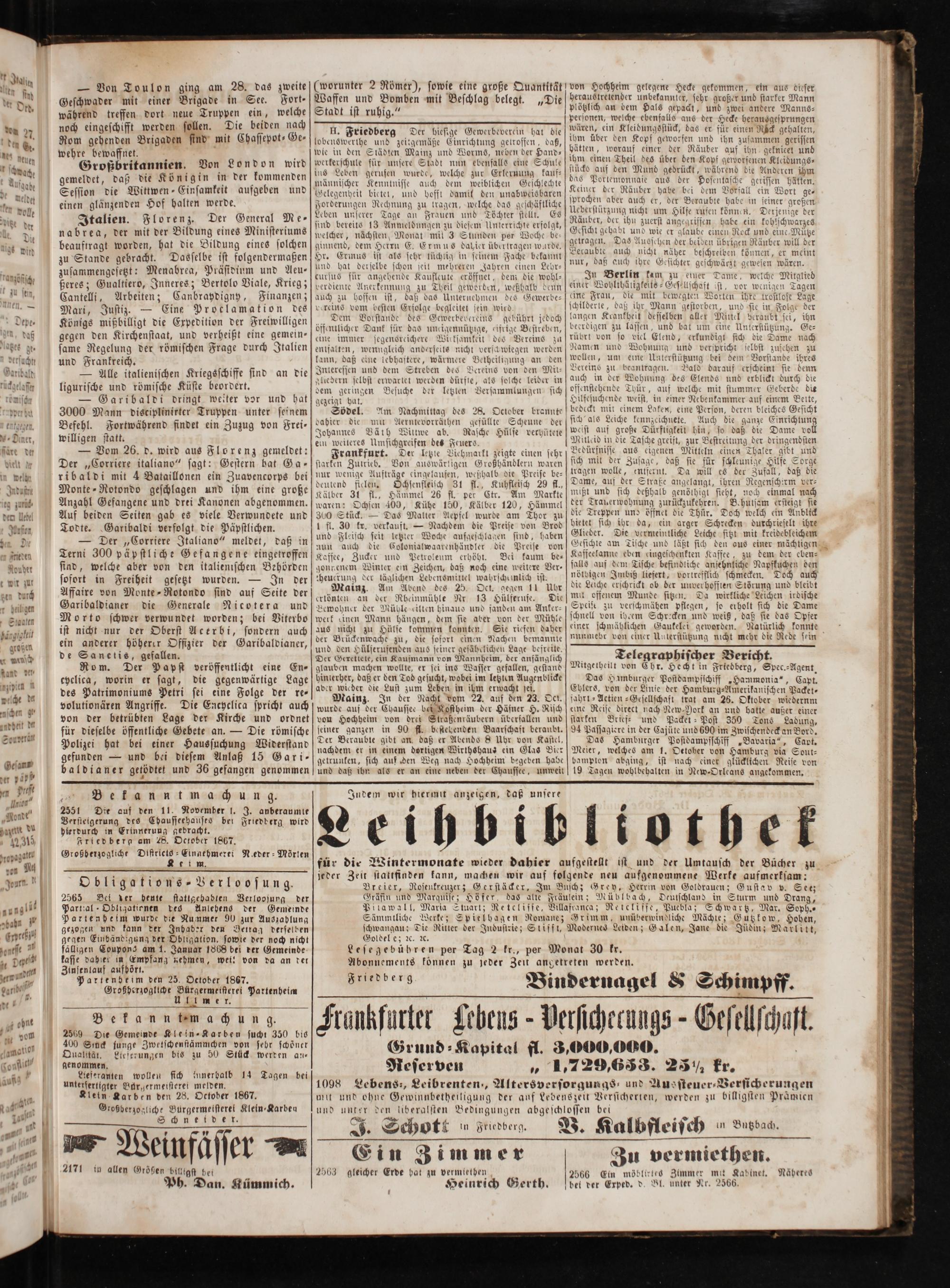 A0 Klein Karben den 28. October 1867. mit und ohne Gewinnbetheiligung der auf Lebenszeit Versicherten, werden zu billigsten Prämien dan, Großberzoglichet Burgermelsterel Klein⸗Karben und unter den liberalsten Bedingungen abgeschlossen bei