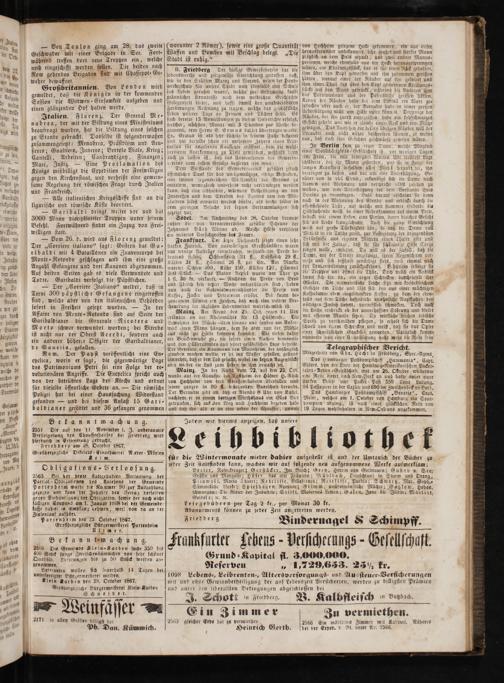 Gesanr 5 4 getrunken, sich auf den Weg nach Hochheim begeben habe] bampton abging, ist nach einer glücklichen Reise von 170 baldianer getödtet und 36 gefangen genommen und daß ihn als er an eine neben der Chaussee, unweinse19 Tagen wohlbehalten in New-Orleans angekommen. tr) 4 g n puff Bekanntm ach un g. Jndem wir hiermit anzeigen, daß unsere 1 g 0 — 2551 Die auf den 11. November l. J. anberaumte 2 2 2 9 „Non Versteigerung des Chausseehauses bei Friedberg wird pant du hierdurch in Erinnerung gebracht. d 42315 Friedberg am 28. October 1867. iat Großberzogliche Diftricts-Einnehmerei Nieder-Mörlen 2 5; g f U ü — 0 Keim. für die Wintermonate wieder dahier aufgestellt ist und der Umtausch der Bücher zu