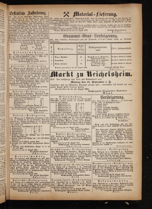 großen Anzahl Ferkel befahren werden. Reichelsheim den 29. August 1868.