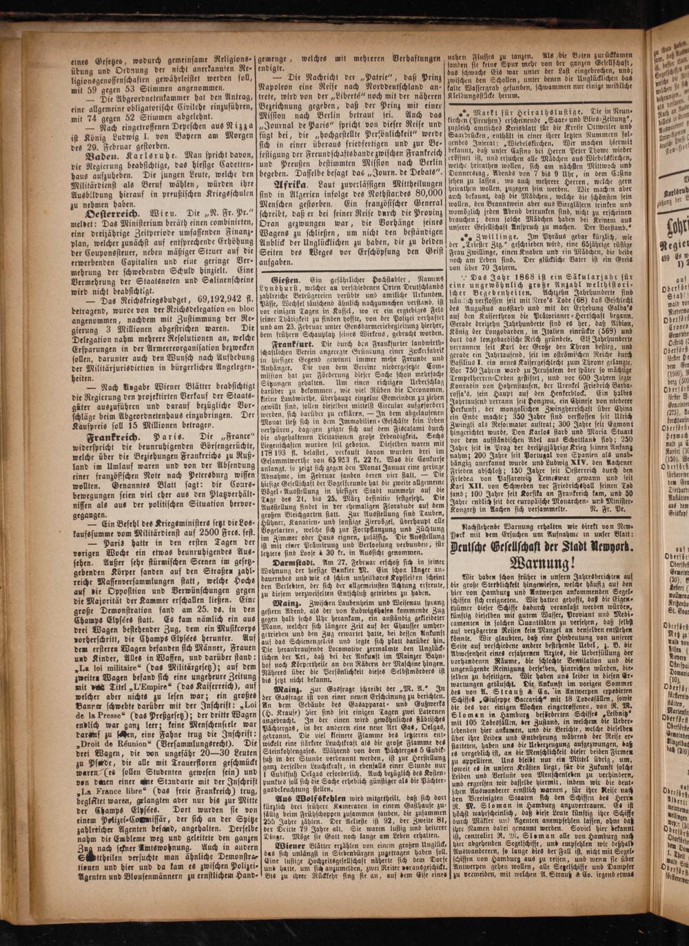 Oculscht Gesellschast der Stadt Newyork. Warnung!