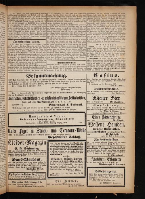 Ber ienung zusichernd halte ich mich beflens empfohlen. Frankfurt a. M. im October 1868.