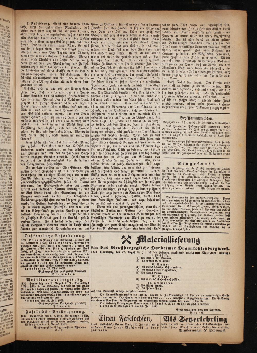 Friedberg den 31. Juli 1868. Großherzogliches Ortsgericht Frledberg Zouc ar.