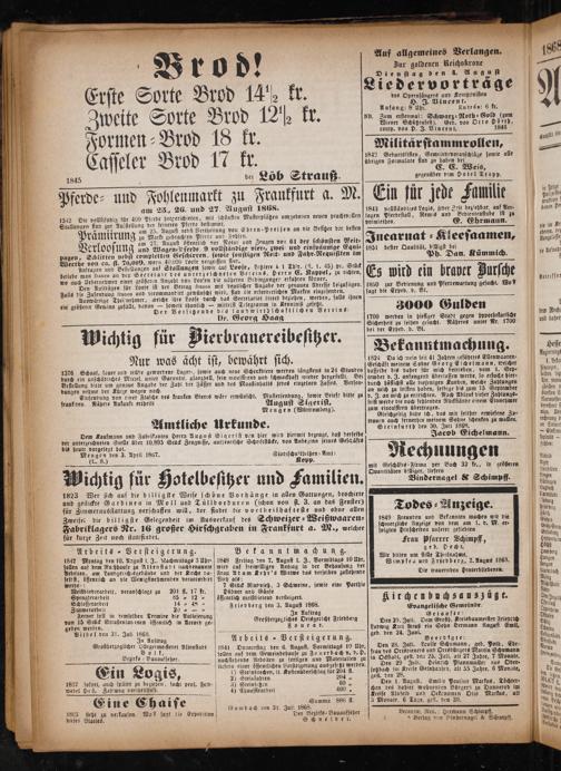 Den 29 Juli. Heintich Pfannmüller aus Oder⸗ sotzbach im Kreise Gelnhausen, alt 55 Jahre, 6 Monate, gest. den 28.