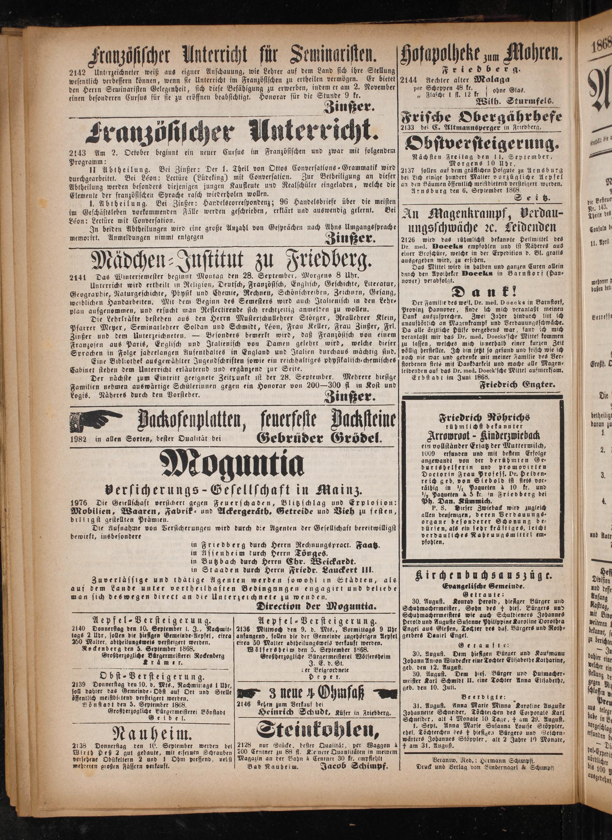 Verantw. Red.: Hermann Schimpff. Druck und Verlag von Bindernagel& Schimpf