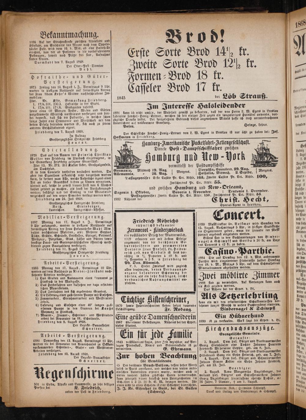 Arbeiten versteigert. Friedberg den 10. August 1868. Der Bezurks⸗Bauaufseher Schneider.