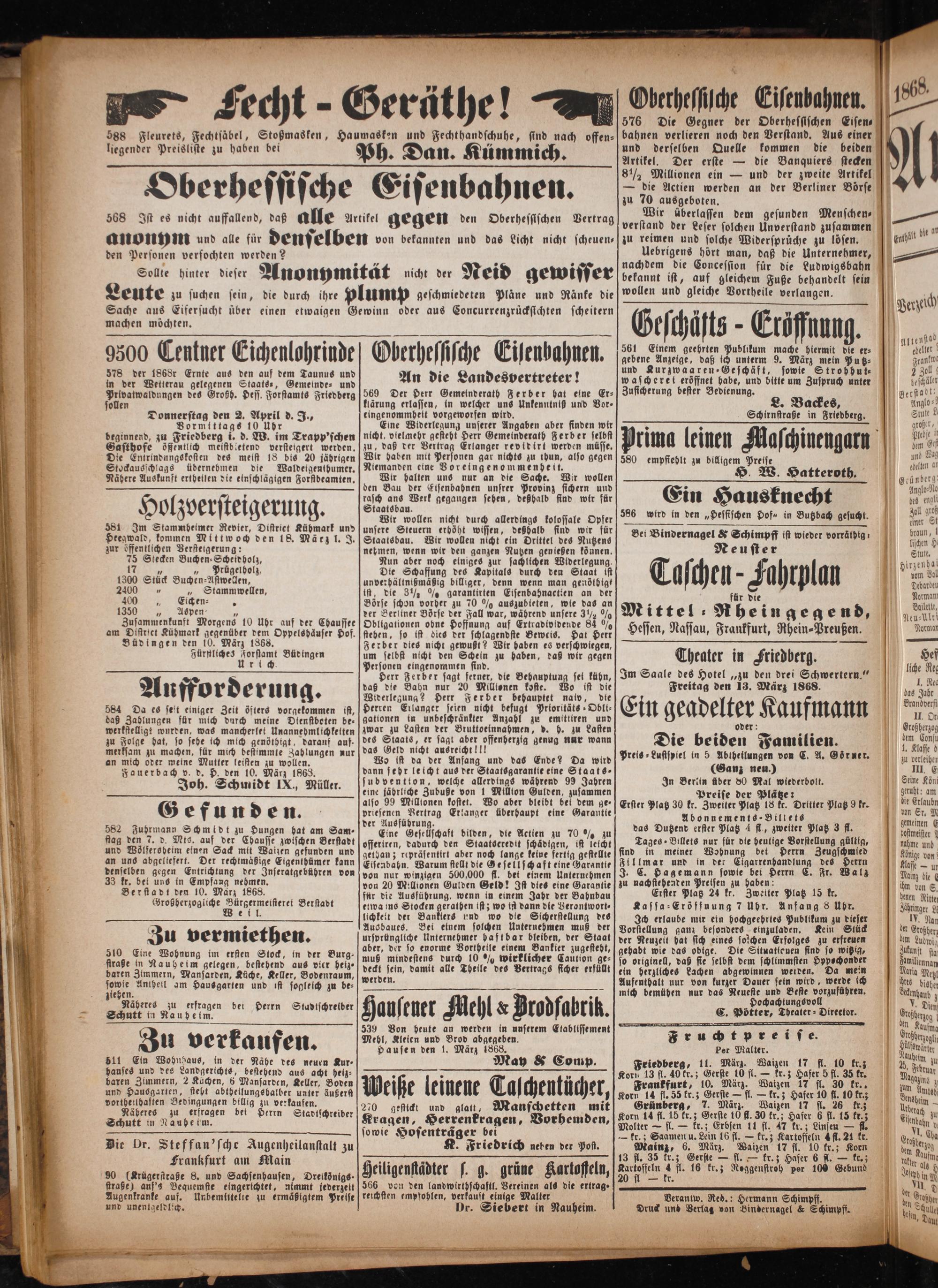 Verantw. Red.: Hermann Schimpff. Druck und Verlag von Bindernagel& Schimpff.