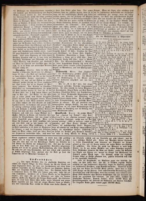 Frankreich. Paris. In gleicher Weise wie das„Journal des Debats“, eifert Herr Guéroult in der„Opinion nationale“ gegen die kriegerischen Tendenzen, welche man der Re— gierung unterlegt:„Alles zu verlieren, nichts zu gewinnen; zwei sichere Feinde: Preußen und Italien; ein wahrscheinlicher Feind: England, wenn wir nämlich von dem Kriege etwas profitiren wollen; ein ohnmächtiger Freund: Oesterreich; im Orient die Freiheit ganz Europa's bedroht, das wäre in wenig Worten die Bilanz des