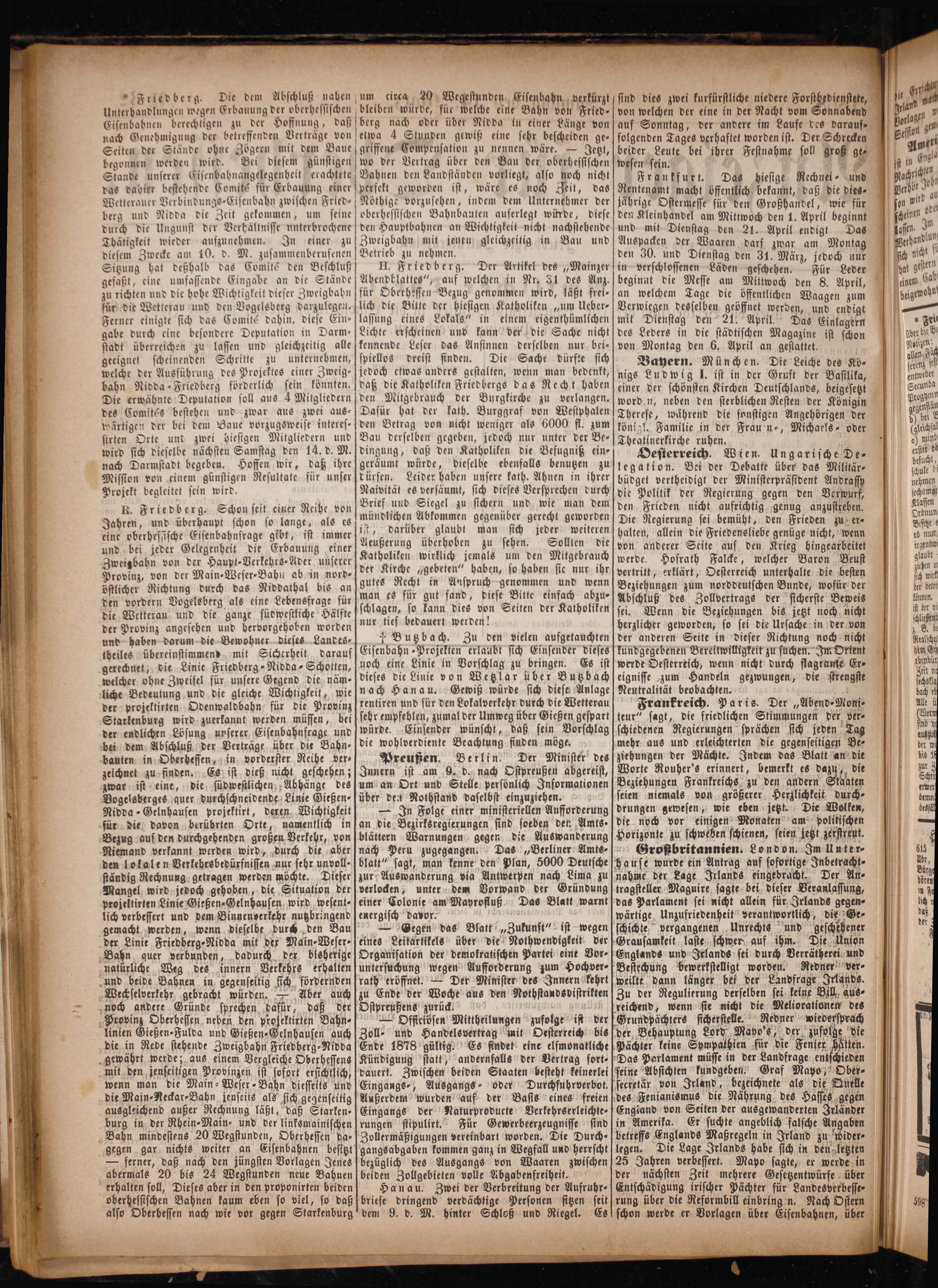 Friedberg. Die dem Abschluß nahen Unterhandlungen wegen Erbauung der oberhessischen