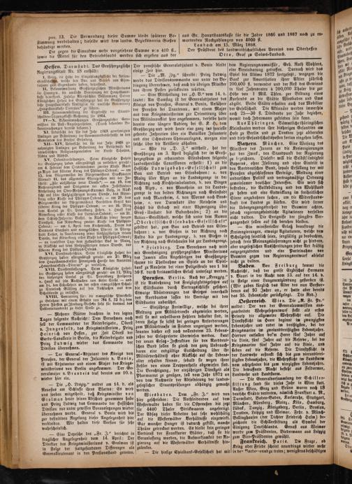 — Eine Mittheilung der„H. V.“ vom 14. d. lautet: Am Samstag ist der Generaladjutant des Königs von Preußen, General v. Bonin, Anführer der Preußen bei Trautenau, mit einem Major aus dem Kriegsministerium zur Orientirung über den Militärconflict hier angekommen, derselbe hatte bereits eine längere Audienz bei S. K. H. dem Großheczog und wird heute eine ganz ins specielle gehende Inspection über ein Bataillon Infanterie und eine Schwadron Cheveauxlegers, morgen eine solche über die Artillerie abhalten.